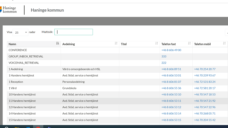 De flesta av oss verkar söka sina kollegor via mobiltelefonen också när vi sitter vid datorn. IT-enhetens Lindha Carlsten, förvaltningsledare telefoni, vill därför uppmärksamma oss alla på vår interna telefonkatalog där kan hitta den du söker direkt i datorn.