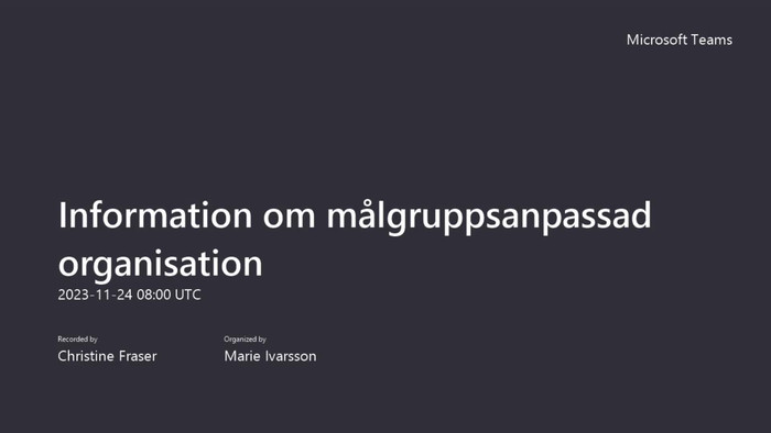 Förvaltningsledningen bjöd in till Teams-möte den 24 november där information gavs om det som har beslutats kring placering av funktioner och verksamheter och frågor som varit föremål för utredning i den målgruppsanpassade organisationen. Lotta Wigen, förvaltningsdirektör berättar i filmen om vad som har beslutats och vad som händer nu i det fortsatta arbetet.