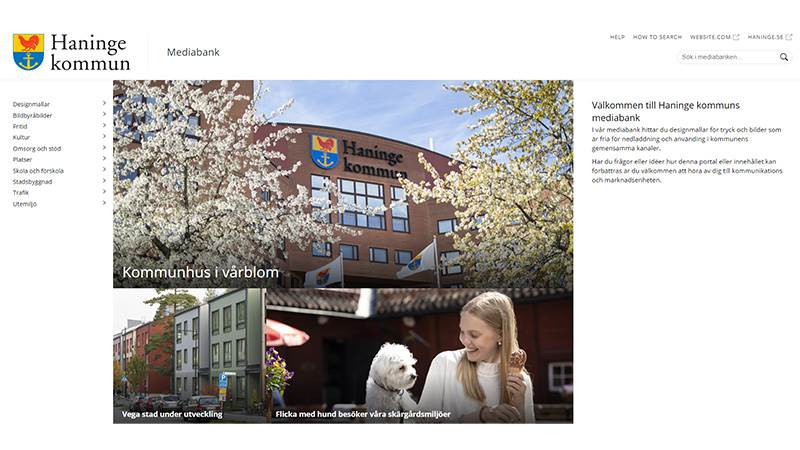 När du är inloggad på kommunens nät når du bildbank och designmallar i mediaportalen automatiskt via single-sign-on, det vill säga utan att ange några specifika inloggningsuppgifter för portalen.