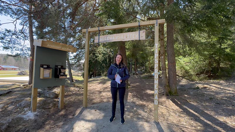 Idag på Svenska friluftsdagen inviger kommunen det nya Allemansrättsspåret - en tipspromenad som ska fungera som ett roligt sätt att lära sig mer om allemansrätten. Se Nicole Forslund (L), ordförande i idrotts-, kultur- och fritidsnämnden, inviga spåret digitalt i videospelaren.