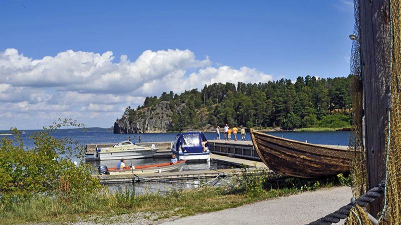 Muskö nås via en tre kilometer lång vägtunnel. Här finns Musköbasen med bland annat reparationsvarv för marinens ubåtar. Stora delar av ön är fritidshusområden. Norr om kyrkan finns flerbostadshus och småhus. I dag bor knappt 800 personer på Muskö.