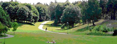 I Eskilsparken hittar du en stor gräsyta med härliga backar där du kan sola, åka pulka och springa. Intill finns en lekplats med grillar och toalett. Här finns grönska, amfiteater, en damm, sittplatser och blommor. Mot sydost övergår den anlagda parken i en mer naturlik del som domineras av stora tallar. I tallskogen finns hundrastgård, frisbee-golf och cykelbana.