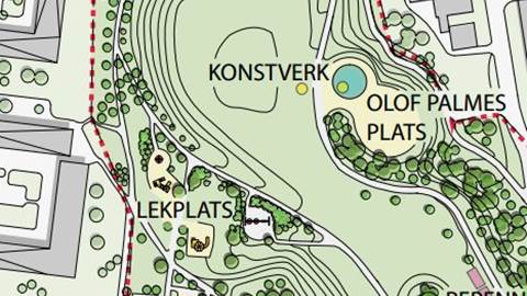 - Pågående arbeten med lekplatsen, entrén och festplatsen (dammen och amfiteatern) beräknas vara klara till årsskiftet 2025/2026