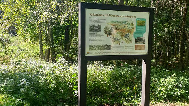 Genom dialogen Nyfiken park har Slätmossens naturpark under åren 2022-2024 utvecklats till en ännu mer välkomnande plats för alla. Här finns nu lekfigurer i form av olika skogsdjur i trä, en stor grillplats och pausplatser i både sol och skugga. För att göra parken tillgänglig så har vi satt upp vägvisning till de olika platserna.