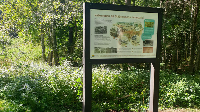 Slätmossens naturpark är en välkomnande plats för alla. Här hittar du lekfigurer av skogsdjur i trä, en stor grillplats och flera pausplatser i både sol och skugga. Vägvisning gör det enkelt att hitta till parkens olika platser.