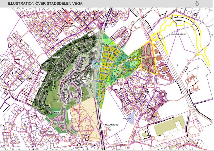 I stadsdelen Vega byggs det för livet. Vega är en levande stadsdel med blandad bebyggelse och goda kommunikationsmöjligheter. Här har särskilda satsningar på gång- och cykelvägar gjorts och det finns torg, parker, handel och service. Runt hörnet finns orörda naturstråk för avkoppling och fritid. Mitt i området finns bland annat ett naturreservat med jättegrytor skapade av inlandsisen. I Vega främjas en aktiv livsstil där det är möjligt att vara ekonomisk och klimatsmart på samma gång. Här är det nära till allt och enkelt att få ihop vardagen.