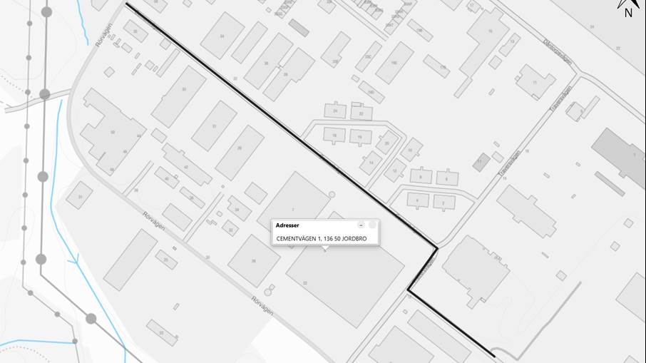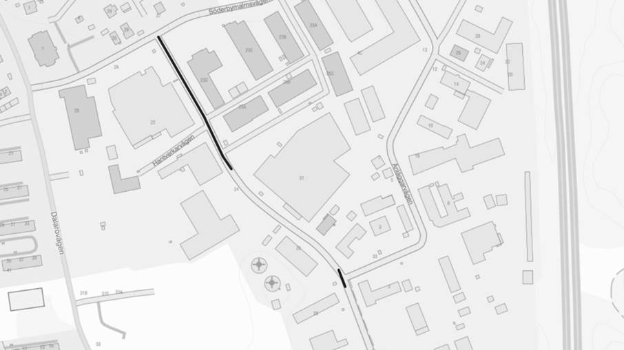 Delar av Cementvägen/Traversevägen i Jordbro industriområde