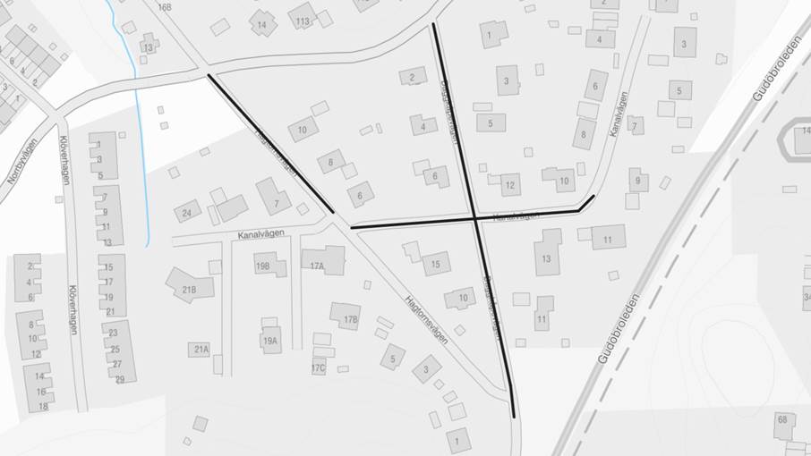 Daggkåpevägen, Kanalvägen och Hagtornsvägen i Vendelsö
