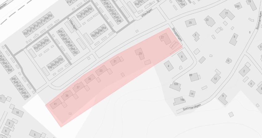 Vi har för närvarande en vattenläcka på Villavägen som påverkar vattenleveransen till i kartan markerade fastigheter.