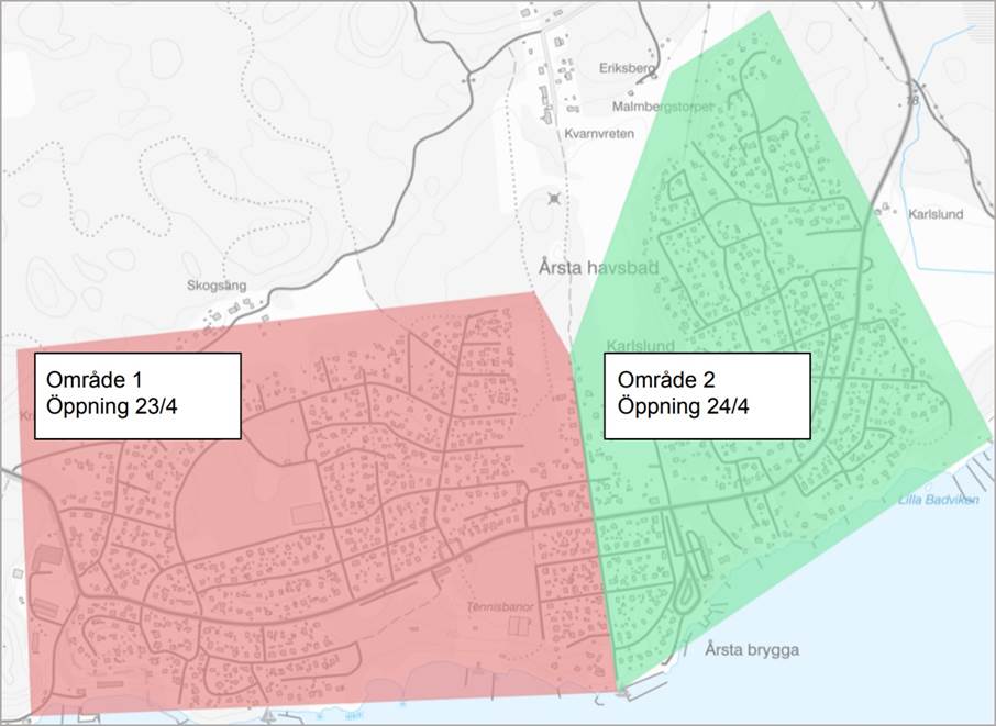 Under vecka 17, den 23:e och 24:e april kommer vi att utföra samordnat påsläpp av vatten i Årsta Havsbad för dem som önskar få vattnet igång efter vintern.