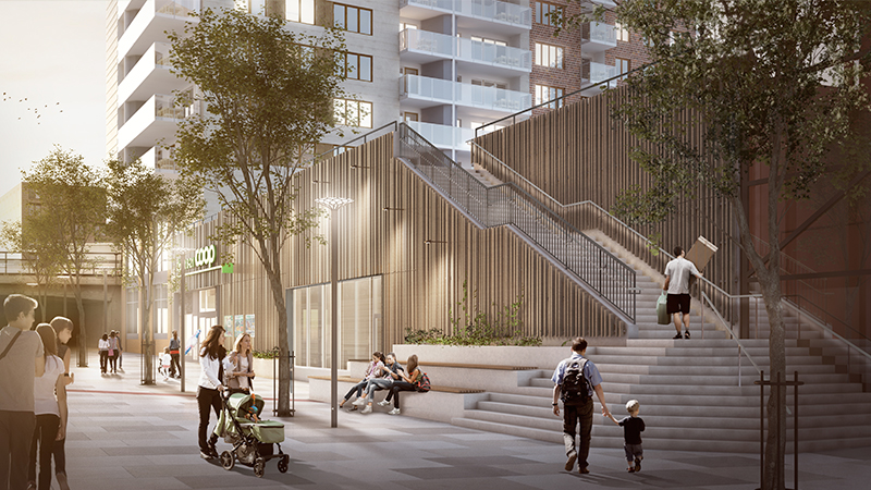 Haningeterrassen växer fram. Här bygger vi en modern och hållbar stad med ny bussterminal, 850 bostäder, vårdlokaler, service och handel – allt nära natur och bra kommunikationer. Första etappen är klar och nu pågår byggnationen av nästa etapp bostäder för fullt.