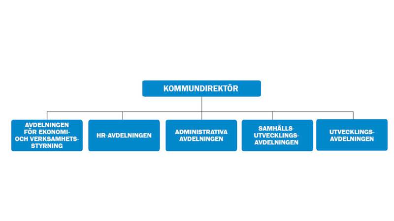 Kommundirektör Kristina Tidestav är förvaltningsdirektör. Fem avdelningar ingår i förvaltningen.