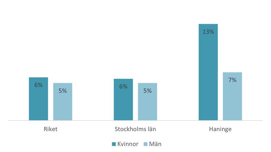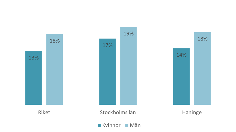 I Haninge röker 13 procent av kvinnorna dagligen och 7 procent av männen. Det är en större andel än i riket (hela landet) och i Stockholms län, framförallt bland kvinnor.