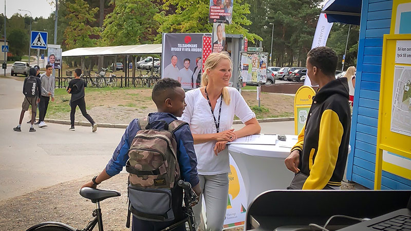 - Vi provtestade pop up-kontoret i Jordbro en dag i förra veckan och träffade minst 20-30 personer som kom fram och var nyfikna på planerna. Kul att se att ungdomar kom fram, det är en grupp som är svårare att nå med traditionella samrådsmöten, säger Magnus Runesson, planchef och tf bygglovschef på stadsbyggnadsförvaltningen.