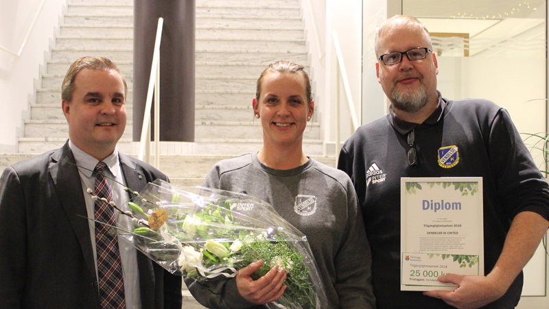 Handikapprådet beslöt att dela prissumman på 50 000 kronor mellan Hotel Winn och Vendelsö IK United. Praktikertjänst Trygg hem tilldelades ett hedersomnämnande.