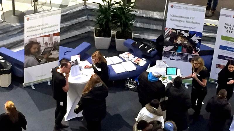 När den årliga rekryteringsmässan hölls i kommunhuset var både förskolan och grundskolan på plats för att berätta om verksamheterna och hitta intressanta kandidater för lediga tjänster och vikarieuppdrag. Intresset för utbildningsverksamheten var stort bland besökarna.