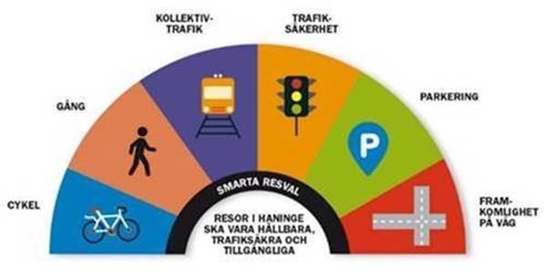 Målbilden är att "Resor i Haninge ska vara hållbara , trafiksäkra och tillgängliga". För att uppnå den övergripande målbilden har sex målområden pekats ut. Det är cykel, gång, kollektivtrafik, trafiksäkerhet, parkering och framkomlighet på väg.