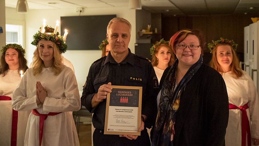 På luciamorgon delades Haninges Luciagram ut till polisen Lars "Backis" Backelin som arbetat som polis i kommunen i 38 år. På polisstationen i Haninge bjöds det vid prisutdelningen på klassiskt firande med luciatåg och tal från kommunstyrelsens ordförande Meeri Wasberg.