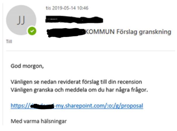 Två kommuner i Storstockholm har under de senaste dagarna blivit drabbade av intrångsattacker. Attacken är av typen phishing-mail. Det innebär att du får ett e-postmeddelande som, i dessa attacker, ser ut att vara skickat ifrån en person som jobbar på kommunen. Avsändaren är dock förfalskad.