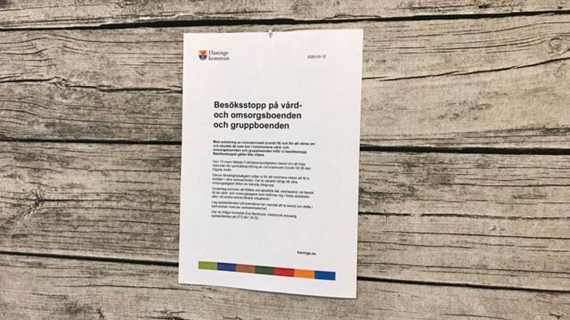 Med anledning av coronaviruset (covid-19) och för att värna om och skydda de som bor i kommunens vård- och omsorgsboenden och gruppboenden för äldre har vi beslutat att inte ta emot externa besök i dessa verksamheter. Besöksstoppet gäller från klockan 8.00 den 13 mars och tills vidare.