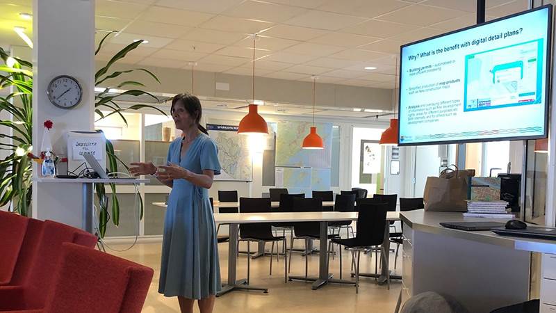 Medarbetare från avdelningarna geografisk information och plan samt vår nya IT-verksamhetsutvecklare Milena Bacanovic Andersson var med och presenterade Haninge kommun och våra verksamheter för besökarna. De berättade bland annat om vårt verksamhetsutvecklings- och digitaliseringsprojekt SmartSam.