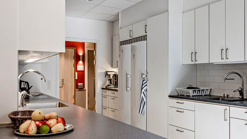 Runt boendet finns fina promenadvägar och vi har en grönskande och härlig trädgård. Varje avdelning har ett gemensamt kök och trivsamma utrymmen för samvaro och måltider. Det finns gemensam uteplats, stora och härliga balkonger.