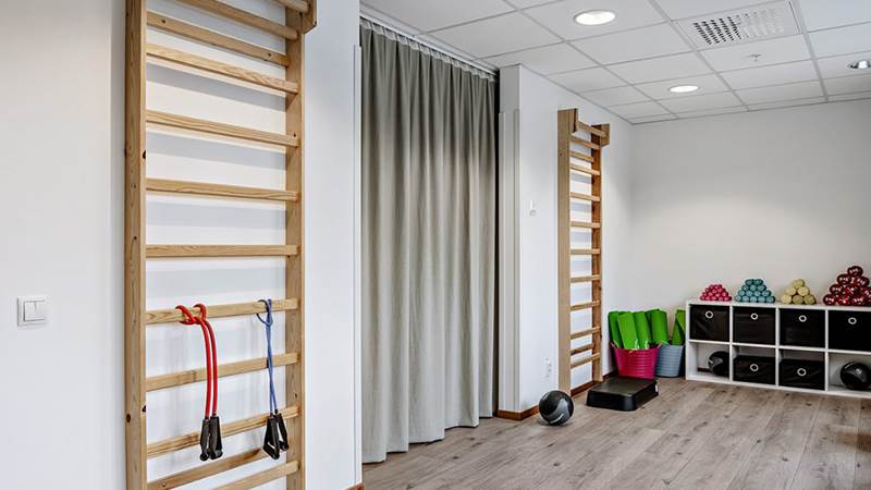 Här finns ett gym och vår fysioterapeut håller i träningspass varje vecka med fokus på styrka.