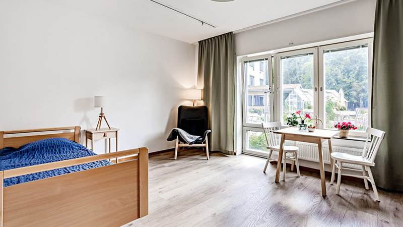Villa Tjädern har 78 lägenheter i fyra våningar fördelat på åtta avdelningar. Din egen lägenhet är ca 30 kvadratmeter och utrustad med trinettkök med kylskåp samt garderob. Badrummet är anpassat med dusch. Trygghetslarm och rörelselarm finns. Lägenheten har en höj- och sänkbar säng, i övrigt möblerar du med dina egna möbler och saker.