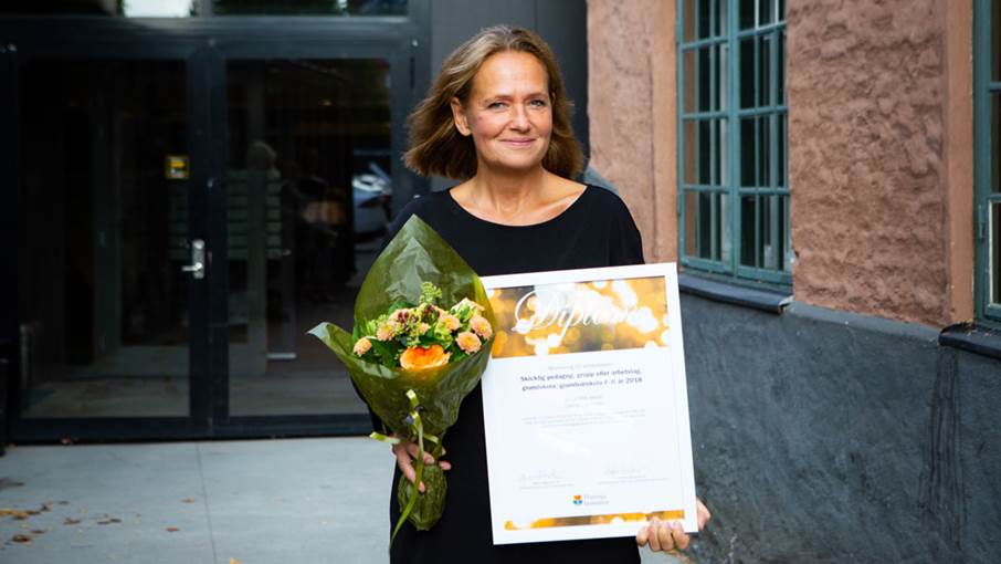 Carina får utmärkelsen för att hon är en otroligt engagerad pedagog som hela tiden hittar lösningar anpassade för den enskilda individen. Eleverna älskar henne och uppskattar hennes engagemang för att alla barn ska lyckas.