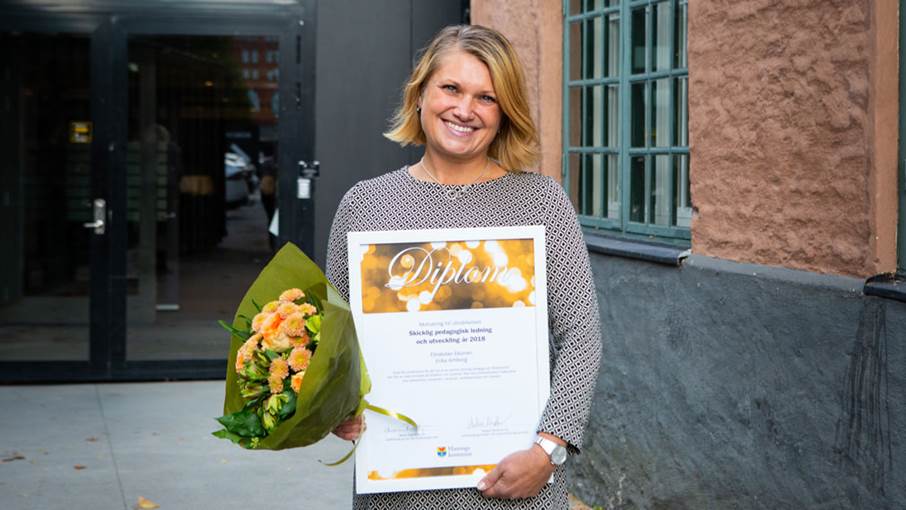 Erika får utmärkelsen för att hon är en oerhört skicklig pedagog och förskolechef. Hon har en stark drivkraft att förbättra och utveckla. Med stor professionalism balanserar hon verksamhet, kooperativ, personal, vårdnadshavare och styrelse.
