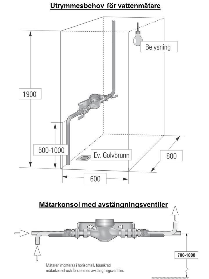 Vesimittarin konsoleille on olemassa useampia eri malleja ja valmistajia. Myös sulkuventtiilien ulkonäkö vaihtelee. Hyväksytty asennus sisältää seuraavat osat: