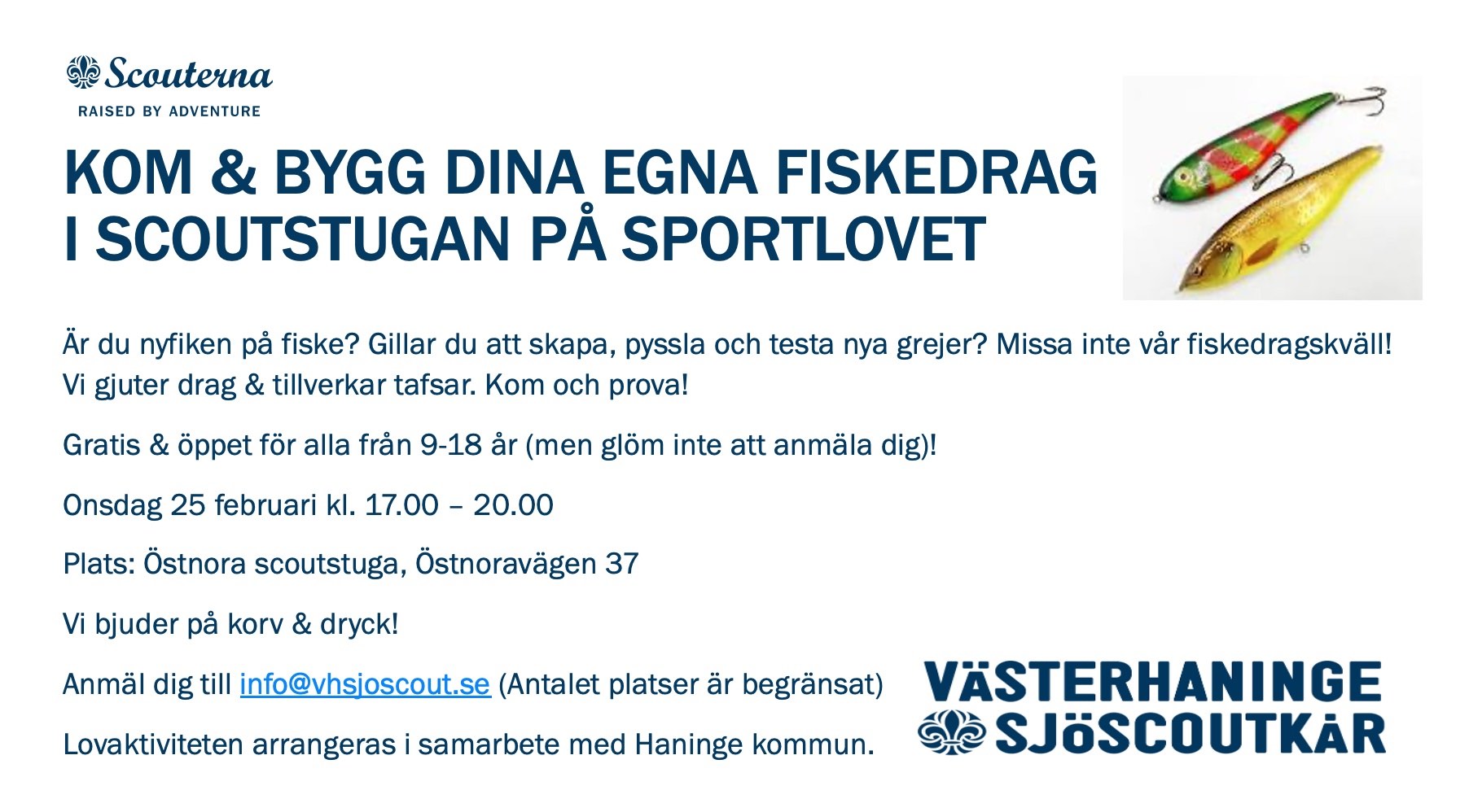 Kom och skapa dina egna fiskedrag i scoutstugan på sportlovet