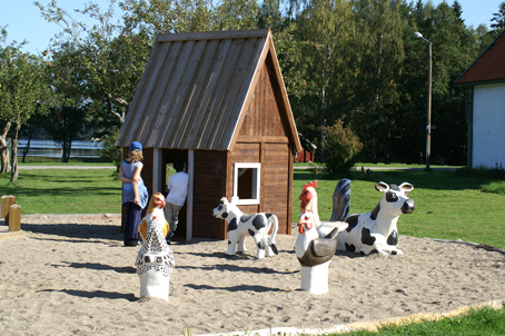 Rudans utflyktslekplats har oändligt med möjlighet till naturlek. Här finns lekhus, vildsvin, gungor, sandlek och en stor klätterställning.